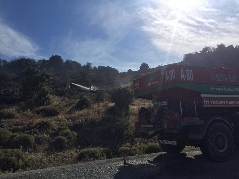 Yangın hakkında bilgi veren Dikili İtfaiyesi Yangın Grup Amiri Serkan Aydın, "Elektrik direğinden çıktığını tahmin ettiğimiz yangına gerekli müdahaleleri yaptık, soğutma çalışmalarımız devam ediyor. Yangının asıl çıkış sebebi Jandarma tarafından araştırılıyor" dedi.