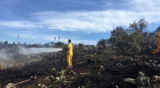 İzmir'in Dikili ilçesinde çıkan yangında 1 hektarlık alan kül oldu.