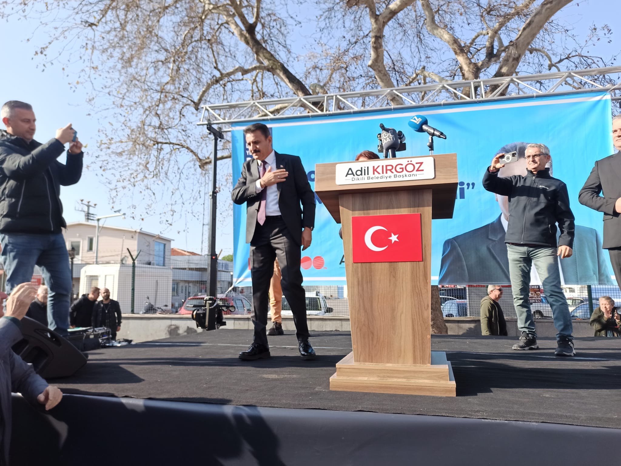 Esra Açıkyıldız/İzmir Gündemi Yaklaşan 31 Mart Yerel Seçimleri öncesi Dikili Belediye Başkanı Adil Kırgöz, Dikili Atatürk Meydanı’nda vatandaşlar ve basın mensuplarıyla bir araya geldi. Vatandaşın yoğun ilgisiyle karşılanan Başkan Kırgöz, Dikili Belediye Başkanlığı aday adaylığını Dikili halkı ile paylaştı. Kırgöz açıklamasına başlamadan önce 5 yıllık süreci yorumlarken, “Aynası iştir kişinin işe bakılmaz” dedi.Dikili Atatürk Meydanında yapılan açıklamada ilk sözü Dikili CHP İlçe Başkanı Emre Kırlı aldı. Kırlı, Bu hizmetlerin devamı için önümüzdeki yerel seçimlerde CHP iktidarını öncelikle Dikili’de sürdürmeye ve sonra tüm Türkiye’ye yaymaya söz veriyoruz.” dedi. Ardından Dikili Belediye Başkanı adil kırgöz açıklama yapmak üzere kürsüye davet edildi.