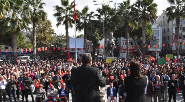 Dikili Atatürk Meydanı’nda aralarında eski ilçe başkanların, eski belediye başkanların, STK başkan ve yöneticilerinin, belediye meclis üyelerinin, mahalle muhtarlarının, CHP Dikili İlçe Kadın Kolları, Gençlik Kolları Başkan ve üyeleri ile partili yol arkadaşlarının da olduğu 2 bin civarında Dikilili hemşeriyle bir araya gelen Başkan Tosun, 31 Mart 2019’da yapılacak yerel seçimlerde üyesi olmaktan onur duyduğu Cumhuriyet Halk Partisi’nden yeniden Dikili Belediye Başkan Aday Adayı olduğunu açıkladı. Yoğun katılım ve coşkuyla gerçekleştirilen açık hava toplantısının açılış konuşmasını yapan CHP Dikili İlçe Başkanı Hasan Altıparmak, “31 Mart 2019 yerel seçimleri hem ülkemiz hem de ilçemiz açısından bir miladı ifade etmektedir. Nisan 2016 halkoylamasıyla değiştirilen parlamenter sistem 24 Haziran genel seçimleri ile uygulamaya konulmuştur. Önümüzdeki yerel seçimlerde de AKP iktidarı uygulamaya koyduğu rejim değişikliğini tamamlamayı hedeflemektedir. Bu bakımdan önümüzdeki seçimler sadece bir belediye seçimi değil Cumhuriyete sahip çıkma meselesidir” şeklinde konuştu.