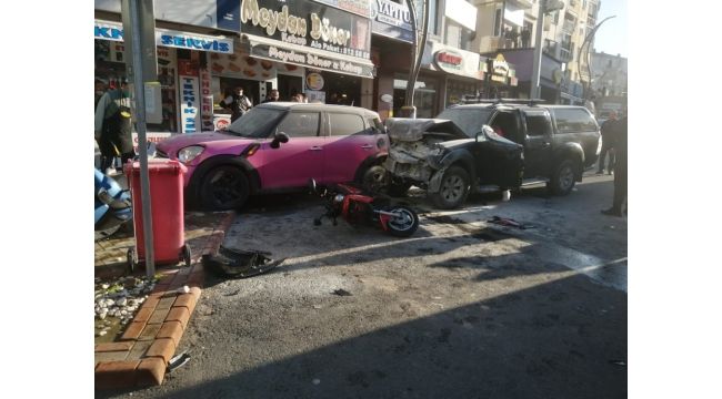 İzmir'in Aliağa ilçesinde, iddiaya göre direksiyon başında rahatsızlanan sürücünün kullandığı kamyonet, park halindeki araçlara çarparak durabildi. Kazada 4 kişi yaralandı.
