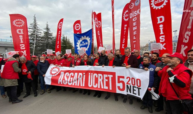 Çalışma ve Sosyal Güvenlik Bakanlığı önünde bir basın açıklaması yapan DİSK, "2022 yılında asgari ücret, en az net 5 bin 200 TL olmalı" talebini yineledi. DİSK Genel Başkanı Arzu Çerkezoğlu, patronların vergi yükü sürekli azaltılırken, asgari ücretlinin vergi yükünün arttığına dikkat çekti.