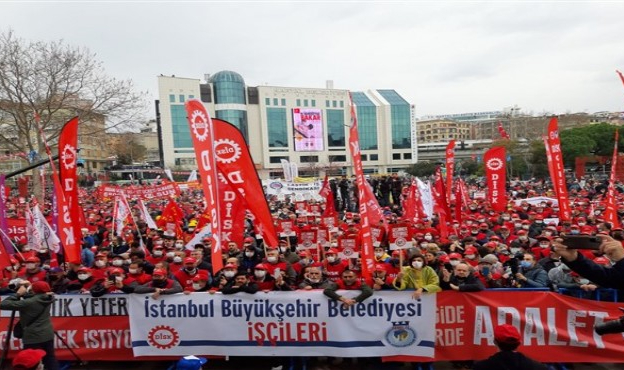 Türkiye Devrimci İşçi Sendikaları Konfederasyonu (DİSK), asgari ücretin net 5 bin 200 lira olması talebiyle saat 14.00'da Kartal'da miting düzenledi. Mitinge emeklilikte yaşa takılanlar, öğrenciler, emekliler, sağlık çalışanları ve çok sayıda siyasi parti destek verdi. Katılımcılar miting alanına girmeden önce yürüyüş yaptı. DİSK Genel Başkanı Arzu Çerkezoğlu, mitingde asgari ücret talepleri hakkında açıklamalarda bulundu.