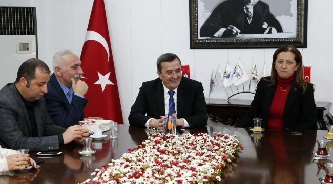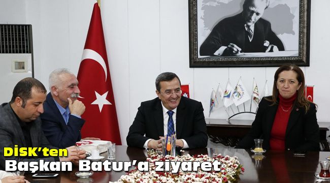 Bergama’daki direnişçi kadın işçilere destek olmak ve sendikal haklarını savunmak için İzmir’de bulunan Türkiye Devrimci İşçi Sendikaları Konfederasyonu (DİSK) Genel Başkanı Arzu Çerkezoğlu, Konak Belediye Başkanı Abdül Batur’u da ziyaret etti. Sohbet havasında geçen görüşmeye dİsk Genel Sekreteri Adnan Serdaroğlu, DİSK Ege Bölge Temsilcisi Memiş Sarı, DİSK’E bağlı Genel-İş Sendikası İzmir 5 No’lu Şube Yönetim Kurulu üyeleri ve sendika temsilcileri eşlik etti.
