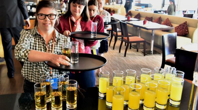 Bornova Belediyesi’nin Hilton Otelleri’yle birlikte down Sendromlu gençlerin meslek sahibi olarak sosyal yaşamın içerisinde yer alması amacıyla hayata geçirdiği “İş’te Fark Yaratıyoruz” projesi, Uygulamalı Servis Eğitim ile devam ediyor. 18 Down sendromlu genç peçete katlamayı, servis açmayı, tepsi ile içecek taşımayı ve boş servisleri toplamayı öğreniyor. O anlardaki mutlulukları ise yüzlerinden okunuyor.