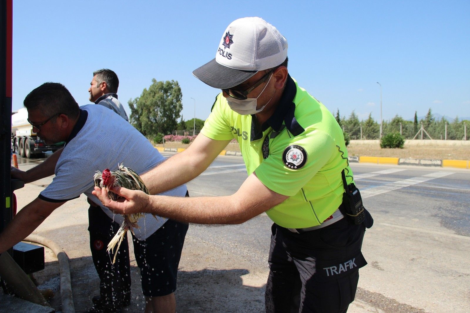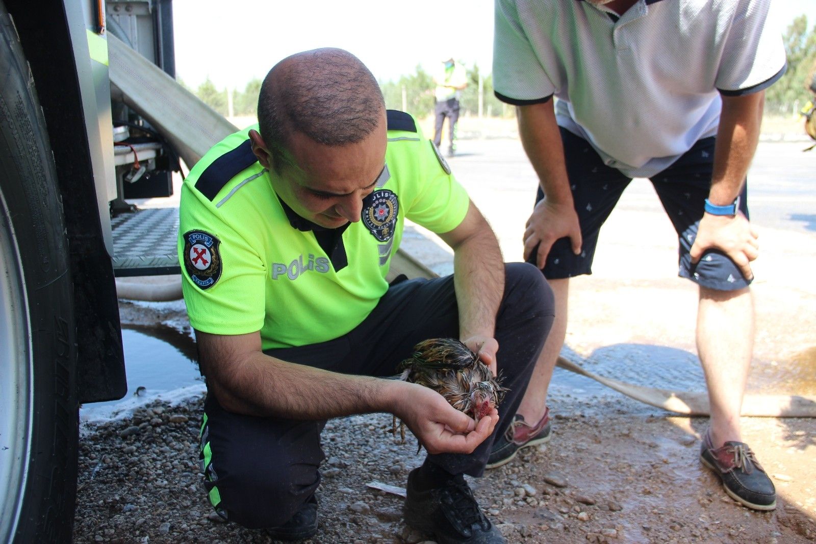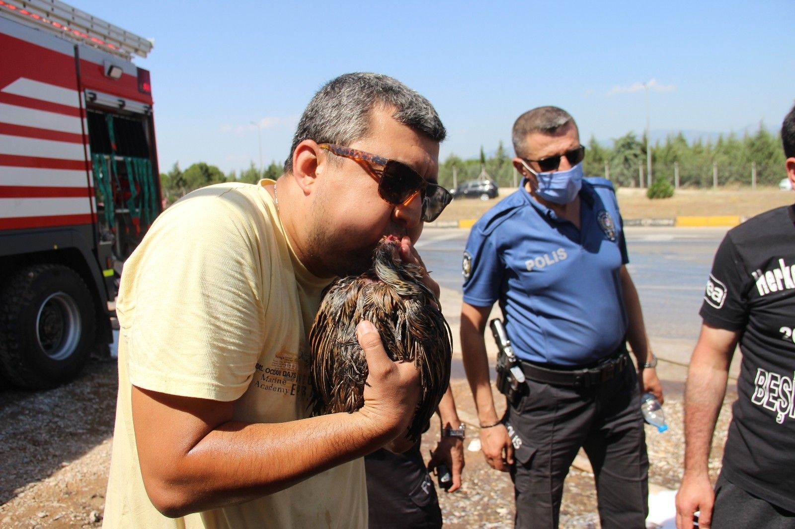 Öte yandan meydana gelen yangında fabrika bahçesinde bulunan tavuk ve horozlar da dumandan etkilendi. Hayvanları fabrikanın dışına çıkaran vatandaşlar ve yangın sebebiyle trafikte kontrolü sağlayan trafik polisleri, dumandan etkilenen hayvanlara müdahale etti. 5 tavuk ve bir horoz, trafik polisleri ve vatandaşların suni teneffüs ve kalp masajları sayesinde yeniden hayata tutundu. Telef olmak üzere olan bir pilice kalp masajı yapan trafik polisi de hayvanın başından bir an olsun ayrılmadı.