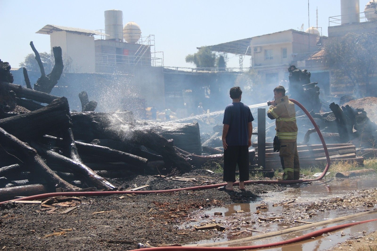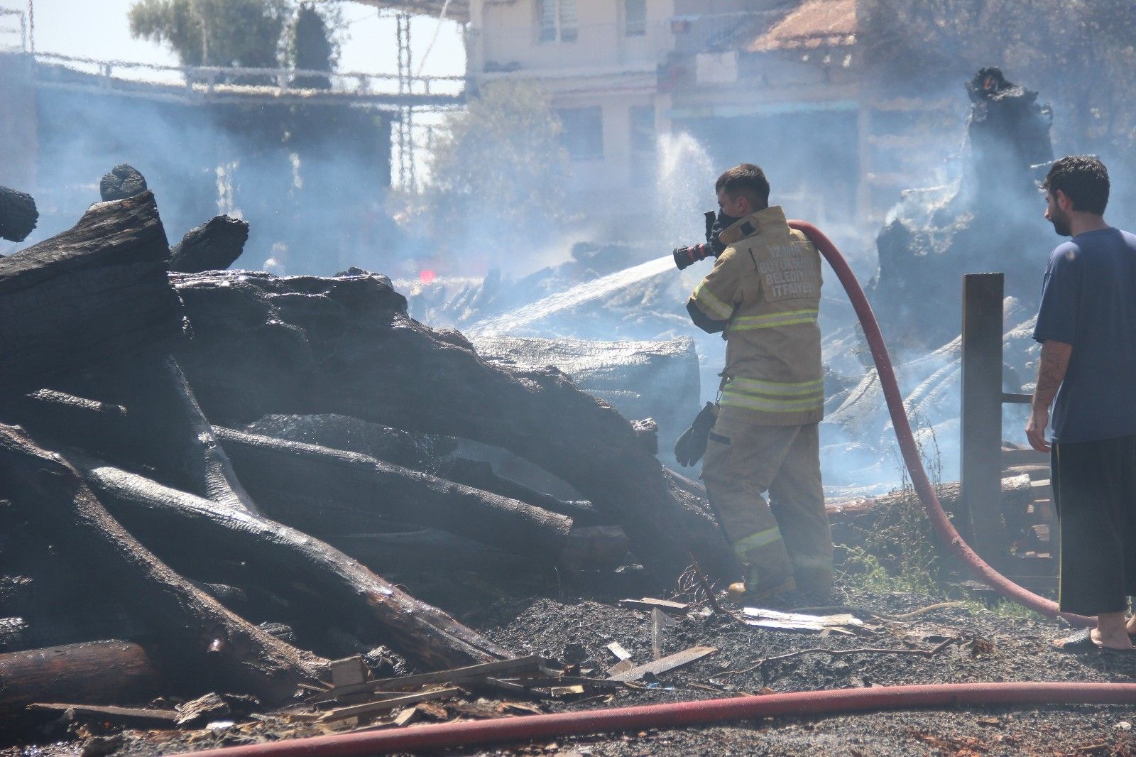 İzmir'in Menderes ilçesinde orman ürünleri fabrikasında çıkan yangın kontrol altına alındı. Fabrikadaki orman ürünlerinin küle döndüğü fabrikada dumandan etkilenen tavuk ve horozlar ise, polis ve vatandaşların ilkyardımı sayesinde yeniden hayata tutundu.
