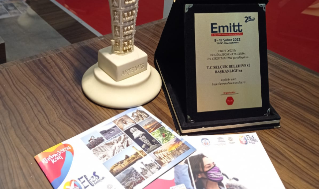 Efes Selçuk Belediyesi EMITT 2022’de ödül aldı. Bu yıl 25. Kez kapılarını açan fuara “Efes Bizimdir” sloganıyla katılan, Efes Selçuk’un sesini duyuran Efes Selçuk Belediyesi en etkin tanıtım ödülünü almaya hak kazandı. Ayrıca Efes Selçuk Belediyesi adına Muğla Ağaçlandırma Sahalarına da fidan dikildi.