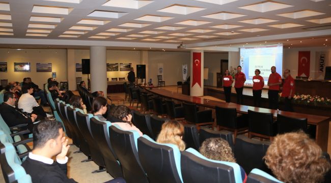 Türkiye’de tamamen gönüllü olarak hayat kurtarmak amacıyla çalışan AKUT (Arama Kurtarma Derneği) İzmir Biriminden, Birim Sorumlusu Benan Ediz, Yardımcısı Esra Pullu; Deniz Durmaz, Hande Göksel Doğan, Müjde Müjgan Aksoylu tarafından Prof. Dr. Ahmet Taner Kışlalı Salonu’nda verilen eğitime belediye personeli katıldı.