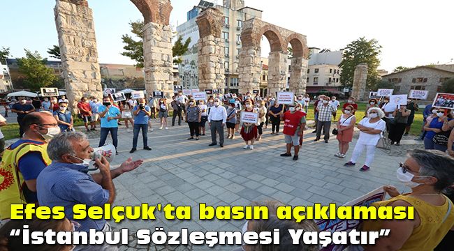 İstanbul Sözleşmesi’nin uygulanmasının gerekliliğine ilişkin yapılan basın açıklamasını Eğitim – Sen selçuk Temsilciliği Yürütme Kurulu Üyesi Gizem Soylu okudu. Soylu erkek egemen bakış açısının şiddete zemin hazırladığını belirterek; “Türkiye 2011 yılında Birleşmiş Milletler ile İstanbul Sözleşmesi’ni imzaladığı halde şiddet gören kadınlara sağlanması gereken etkin korumayı gerçekleştirememiştir. 2014 yılından bu yana İstanbul Sözleşmesi’nin yükümlülükleri yerine getirilmemiştir. Bu sözleşme uygulansaydı bugün Pınar Gültekin, Şule Çet, Emine Bulut ve Özgecan Aslan gibi nice kız kardeşimizin hayatı son bulmayacaktı. Onların gülüşleri çalınmayacaktı. Bu yüzden İstanbul Sözleşmesi ve 6284 Sayılı Koruma Kanunu hayata geçirilmelidir” dedi.