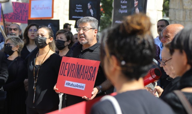 İran'da gözaltında uğradığı şiddet sonucu hayatını kaybeden Mahsa Amini için Efes Selçuk’ta basın açıklaması düzenlendi.
