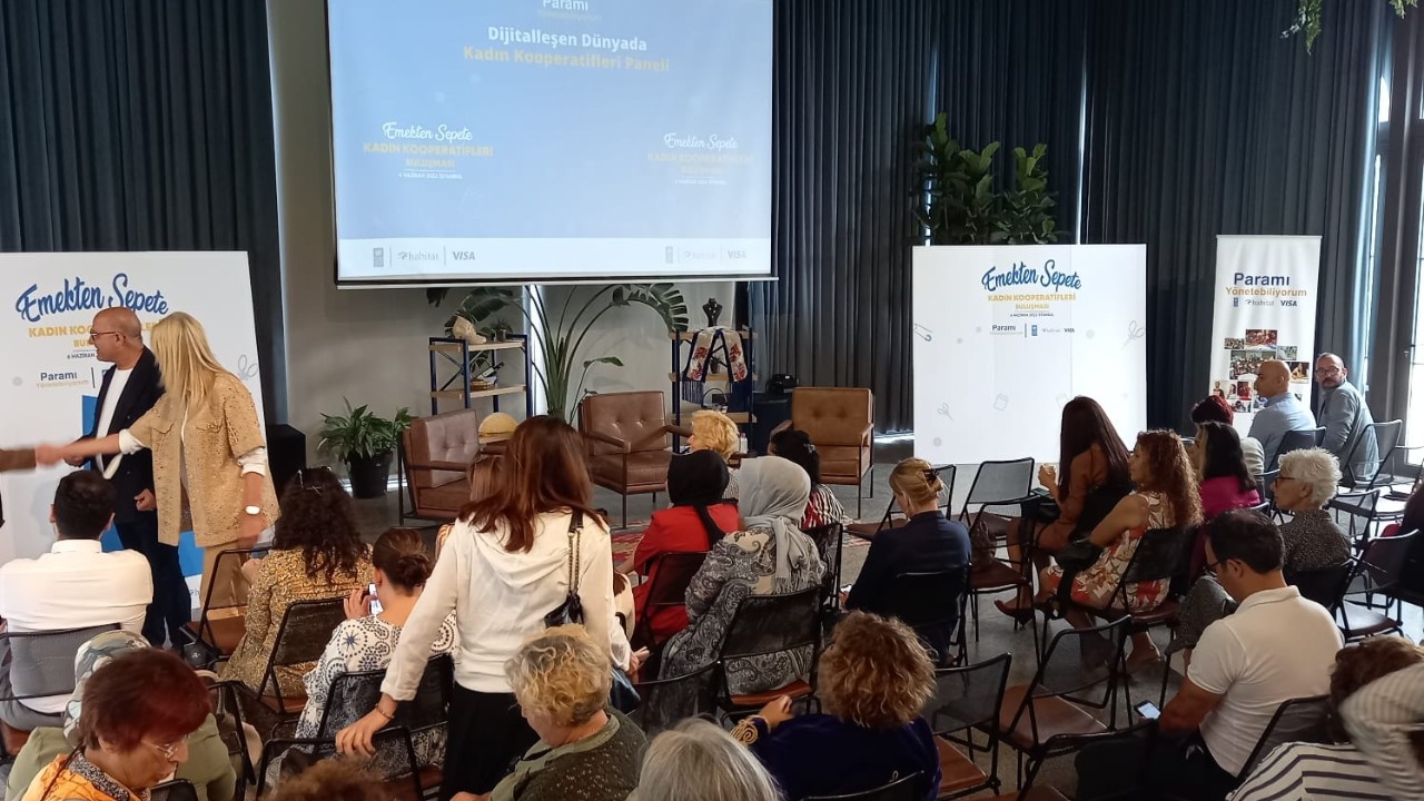 “Paramı Yönetebiliyorum” Projesi kapsamında Emekten Sepete Kadın Kooperatiflerini Destekleme Programı’na katılan Efes Selçuk Tarımsal Kalkınma Kooperatifi, ortaklarının çoğunluğu kadın olan ve kadın emeğini değerlendirme amacı güden 12 kooperatif arasına girmeye hak kazandı. Kooperatif adına üye Ferda Topalan, kadın kooperatiflerini İstanbul’da buluşturan Dijitalleşen Dünyada Kadın Kooperatifleri Paneli’ne katıldı. Etkinlikte Efes Selçuklu kadınların üretmiş oldukları ürünler de ziyaretçilerle buluştu.