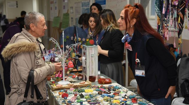 EÜ tıp Fakültesi Hastanesi ana koridorunda düzenlenen kermeste el emeği ürünler merkez yararına satışa sunuldu.