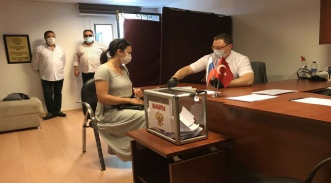 Ege Bölgesi'nde yaşayan Rus vatandaşlar, ülkelerindeki anayasa değişikliği için yapılan halk oylaması kapsamında İzmir'de oy kullandı.