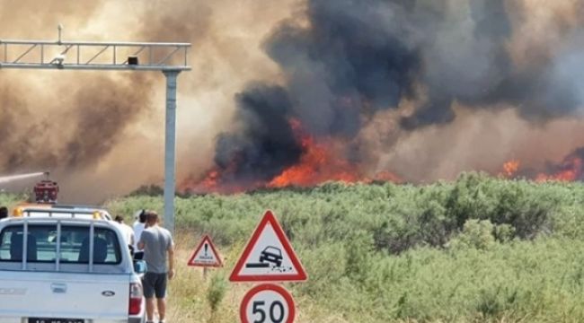 Balıkesir'in Edremit ilçesinde turistik tatil bölgeleri Akçay ve Dalyan arasında kalan sazlık alanda başlayan yangın yerleşim yerlerini tehdit ediyor. Alevlerin sahile ve yola kadar geldiği alanda denizden çıkan tatilciler endişeli gözlerle alevleri izlerken Edremit Kara yolu üzerindeki bazı noktalarda da kara yoluna kadar uzanan alevler yüzünden trafik ilerleyemiyor. Göçmen kuşların duraklama noktası olduğu öğrenilen bölgede alevlerin arasında kalan çok sayıda hayvanın telef olduğu belirtiliyor.Edinilen bilgiye göre Dalyan ve Akçay arasında kalan sahil şeridindeki sazlık alanda aniden çıkan yangın rüzgarında etkisiyle kısa sürede büyüdü. Alevler sahil şeridi ve yazlıkçıların bulunduğu yerleşim yerine kadar ilerleyince panik olan vatandaşlar alevlere ilk önce kendileri müdahale etti. Rüzgarın etkisiyle sahile kadar inen alevler yüzünden denizde olan vatandaşlar denizden çıkıp endişeli gözlerle alevleri izledi. Akçay ve Dalyan arasındaki kara yolunda alevler yüzünden trafik durma noktasına gelirken araçlarından inen vatandaşlar itfaiye ve orman ekiplerine yardıma koştu. Göçmen kuşların uğrak noktası olarak bilinen sazlık alanda çok sayıda canlı türünün de telef olduğu belirtildi.Rüzgarın etkisiyle büyüyen yangına itfaiye ve orman ekipleri müdahale ederken Balıkesir'den havalanan yangın söndürme helikopteri de söndürme çalışmalarına başladı. Yangının devam ettiği kara yolunun halen kapalı olduğu öğrenildi.