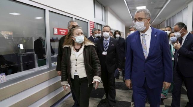 Acil servise başvuran hastaların ilk girişten itibaren tüm tıbbi değerlerinin dijital dosyalarına işlenmeye başladığını söyleyen Rektör Budak, "Ege Üniversitesi Tıp Fakültesi A Plus Hastanemize yatırımlarımız sürüyor. Hastanemizin acil servis girişini yeniden düzenledik ve hem sağlık çalışanlar açısından hem de hasta yakınları ile hastalarımızın daha kaliteli sağlık hizmeti alabilmeleri açısından çok daha modern bir girişi projelendirip uygulamaya aldık. Şu anda kullanılmaya başlandı. Hem hastalarımız hem de sağlık çalışanlarımız bundan memnun aynı zamanda da sağlık çalışanlarımızın güvenliği anlamında da bu fiziki önlemlerimiz önemli" dedi.