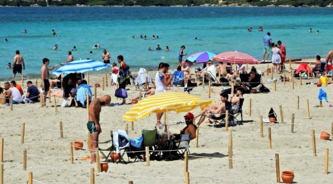 Sıcaklığın bunalttığı turizm merkezinde, yaklaşık bin 200 metrelik Ilıca Plajı'nda bazı vatandaşlar yer bulmakta zorlandı.