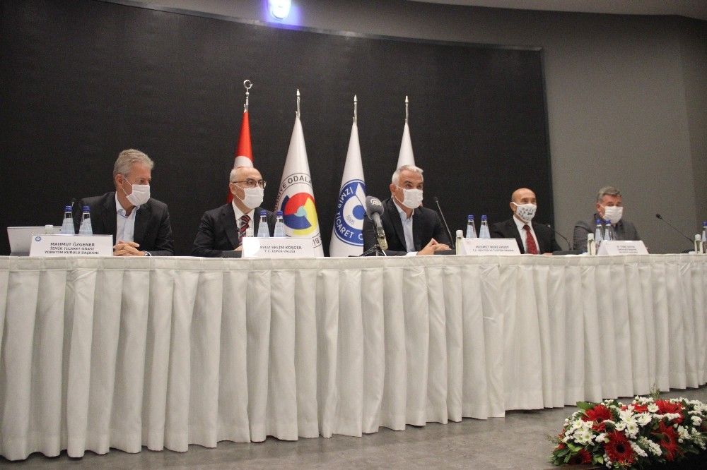 'Ege turizm Merkezi- Çeşme Projesi' ile ilgili basın toplantısı, Kültür ve Turizm Bakanı Mehmet Nuri Ersoy'un katılımıyla İzmir Ticaret Odası'nda gerçekleşti. Toplantıya, Kültür ve Turizm Bakanı Mehmet Nuri Ersoy'un yanı sıra İzmir Valisi Yavuz Selim Köşger, İzmir Büyükşehir Belediye Başkanı Tunç Soyer, Çeşme Belediye Başkanı Ekrem Oran ve İzmir Ticaret Odası Yönetim Kurulu Başkanı Mahmut Özgener katıldı. Toplantıda, oda ve sivil toplum kuruluşu temsilcileri de hazır bulundu.