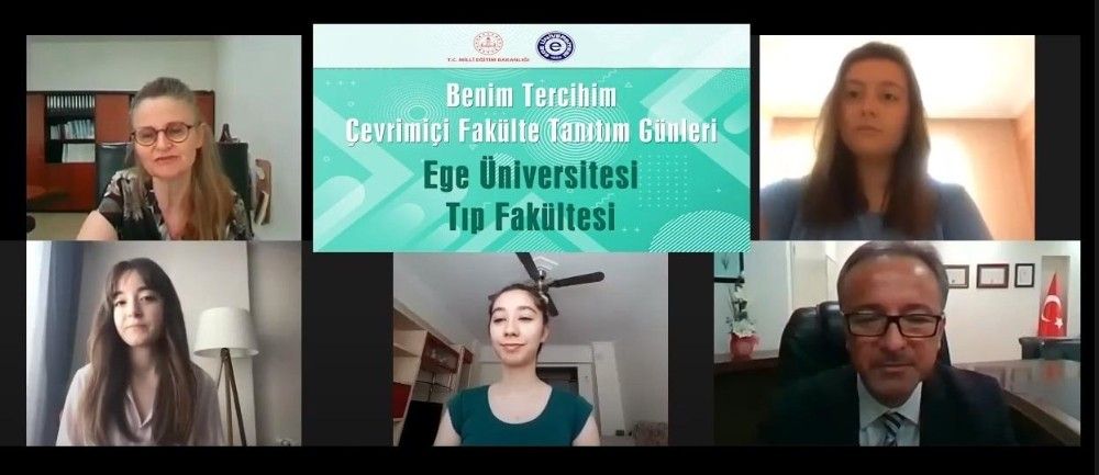 Milli Eğitim Bakanlığı Ortaöğretim Genel Müdürlüğü organizasyonuyla düzenlenen "Çevrimiçi Üniversite Tanıtım Günleri" kapsamında, Ege Üniversitesi bünyesinde eğitim-öğretim faaliyetlerini sürdüren 15 fakültenin dekanları ile üniversite adayları öğrencileri buluştu. Aday öğrenciler tercih etmek istedikleri bölümler ile ilgili merak ettikleri soruları fakülte dekanlarına sorma fırsatı yakaladı.