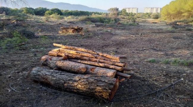 Ege Üniversitesi’ndeki lojmanların bulunduğu arazide yüzlerce ağaç kesildi.