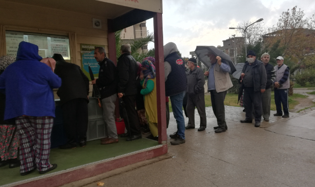 Fırtınada ekmek sırası bekleyen vatandaşların oluşturduğu kuyruk geçim sıkıntısını ortaya koydu.