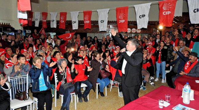 Paşa Limanı'nda da vatandaşlar tarafından coşkuyla karşılanan chp Çeşme Belediye Başkan Adayı Ekrem Oran, konuşmasına başlamadan önce, halen Ardıç Mahallesi Muhtarı olan ve tekrar aday olan Eyüp Odabaş ile aynı mahallede muhtarlığa aday olan Güven Köstekçi'yi yanına davet ederek, her ikisine de seçimlerde başarı diledi.