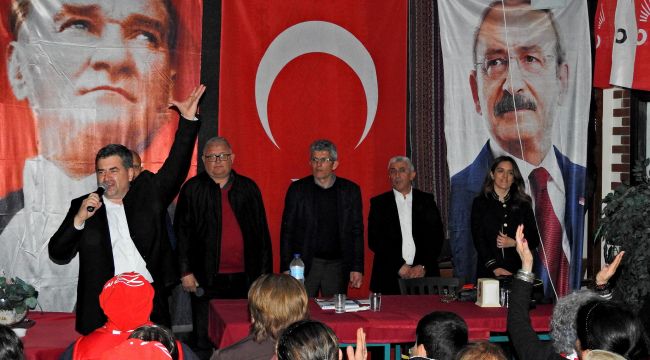 Mahalle toplantısına katılan CHP Çeşme İlçe Başkanı Sait Kavasoğulları ile Millet İttifakı'nın ortağı İYİ Parti'nin İlçe Başkanı Volkan Evci de el ele tutuşarak mahallelileri selamladılar.