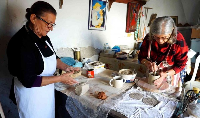 Foça ilçesi Bağarası Mahallesi'nde emekli öğretmenler Nuraydın Kurtul ve Leyla Buhara, emekliliği evde oturarak geçirmek istemedi. Yolları emekli olduktan sonra kesişen ve seramik sanatına merak saran iki kadın, bir atölyede çalışmalara başladı.