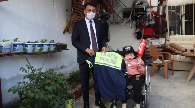 İzmir'in Bergama ilçesinde Emniyet Müdürlüğü, 23 Nisan'ı evlerinden kutlayan özel çocukların yüzlerini hediyelerle güldürdü.