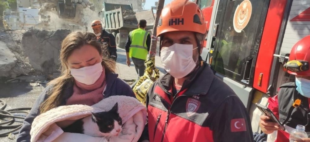 İHH Adana ekibi, İzmir'in Bayraklı ilçesinde depremde yıkılan Rıza Bey Apartmanı'ndan biri hamile dört kedi kurtardı. Ekiplerin kedileri kurtardıktan sonra kendisine teslim ettiklerini belirten İHH Adana ekibinden Ali Ekici, "Kedileri sağ salim çıkardık. İlk kediyi çıkardıktan sonra sahibine teslim ettik. Sahibi çok sevindi, üç kedisinin daha olduğunu söyledi. Biri de hamileymiş. Sonradan diğer kedileri de enkazdan sağ salim çıkardık. Kedileri çıkarırken kediler korktukları için ekip arkadaşlarımızı biraz çırmaladı. Kedileri sahibine ulaştırınca çok sevindi" dedi.
