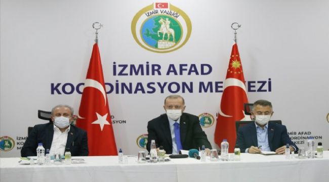 Erdoğan, deprem bölgesinde incelemelerde bulunmak üzere geldiği İzmir'de AFAD Koordanisyon Merkezine geçti.