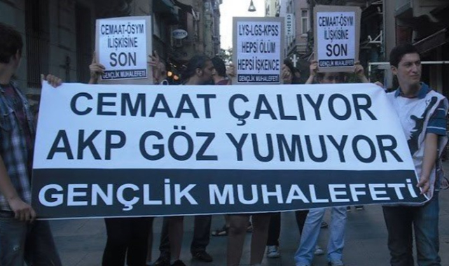 *Fotoğraf: 2010’daki kopya skandalının ardından Gençlik Muhalefeti’nin, FETÖ’ye ait FEM Dershaneleri’nin Taksim Şubesi önünde yaptığı eylemden.
