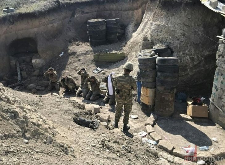 Ermeni işgali altındaki Dağlık Karabağ bölgesini, kuzey ve güneyden kuşatan Azerbaycan ordusu, bir grup Ermeni askeri esir aldı. Azerbaycan Savunma Bakanlığı, beyaz bayrakla teslim olan Ermeni askerlerinin perişan haldeki durumuna ilişkin yeni görüntüleri servis etti.