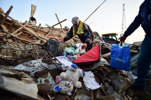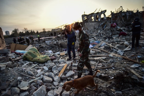 Gence'de füzenin düştüğü yerleşim yeri adeta enkaz alanına döndü.