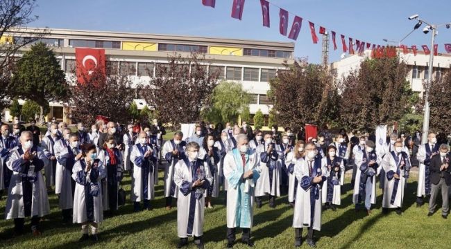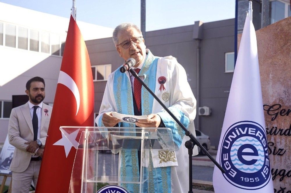 Ege Üniversitesi (EÜ)'nde, Cumhuriyetin 97'nci kuruluş yıl dönümü kapsamında bir tören düzenlendi.