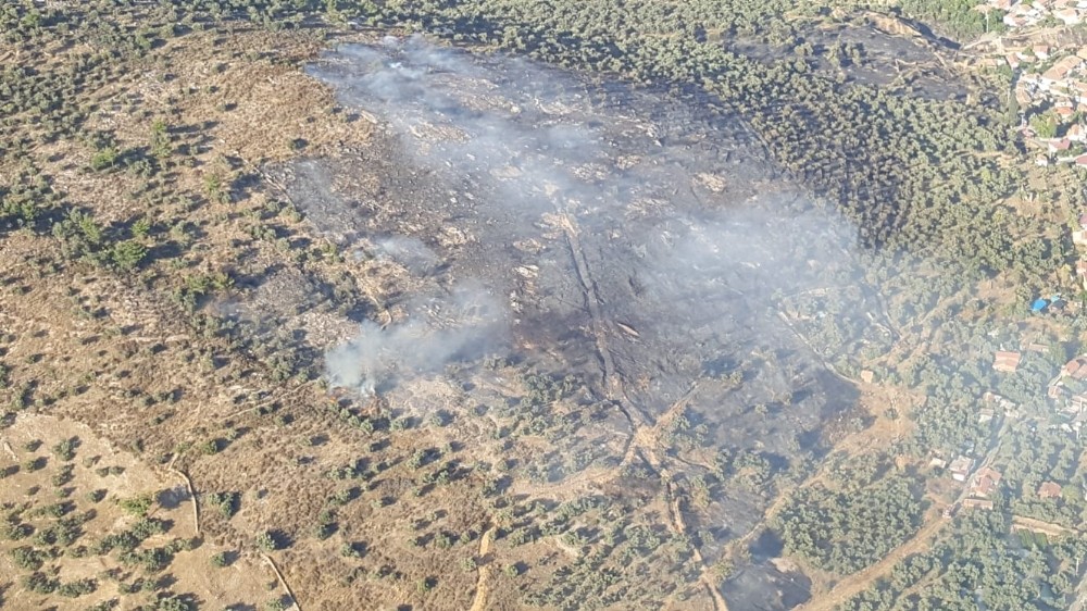 İtfaiye ekiplerinin yanı sıra İzmir Orman Bölge Müdürlüğünden 3 yangın söndürme helikopteri de alevlere müdahale ederken, ekipler yangını yaklaşık 3 saatlik çalışmanın ardından kontrol altına aldı. Ekiplerin soğutma çalışmaları sürüyor.