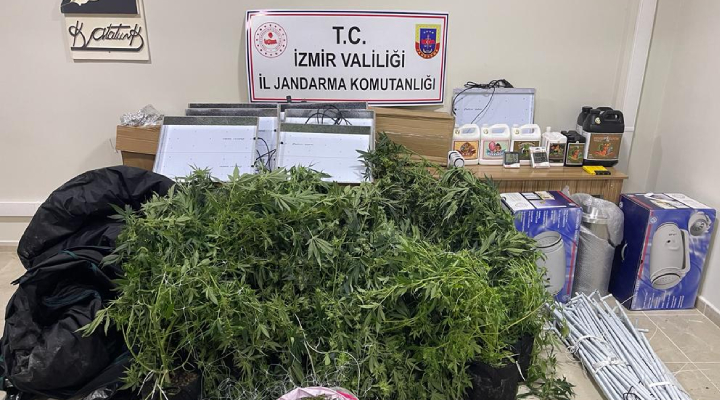 Buca Dumlupınar Mahallesi'ndeki ikamete baskın yapan ekipler evin uyuşturucu serası haline getirildiğini gördü. İkamette bulunan E.U gözaltına alınırken yapılan incelemelerde 13 kök skunk bitkisi, 1 kilogram skunk maddesi, 2 adet iklimlendirme çadırı ile havalandırma cihazı, 7 adet led ısıtıcı, 4 adet zaman ayarlı priz , 2 adet termometre, 2 adet havalandırma borusu, 2 adet ph ölçüm cihazı ve 32 Iitre sıvı gübre ele geçirildi.