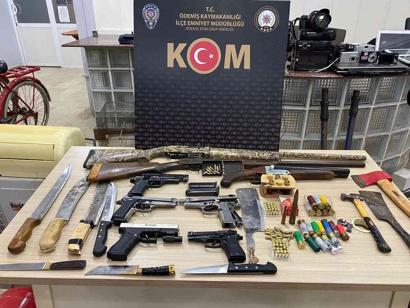 İzmir'in Ödemiş ilçesinde çok sayıda vatandaşın hırsızlık şikayetleri üzerine olayları gerçekleştirdiği belirlenen hırsızlık şüphelisi, polis ekiplerince düzenlenen operasyonla yakalandı. Şüphelinin adresinde yapılan aramada çok sayıda çalıntı malzemenin yanında tabanca, tüfek ve kesici aletler ele geçirildi.