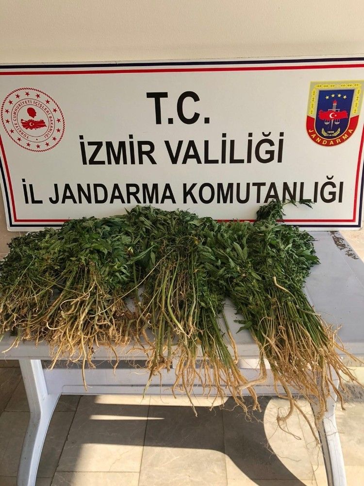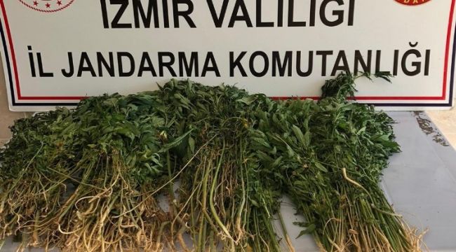 İzmir'in Kemalpaşa ilçesinde jandarmanın düzenlediği operasyonda 136 kök Hint keneviri ele geçirildi, 1 kişi gözaltına alındı.