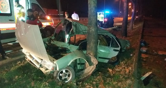 Sakarya’da D-650 karayolunda kontrolden çıkarak yol kenarındaki ağaca çarpan otomobil paramparça oldu. Kazada hurdaya dönen otomobil anne ile babaya mezar olurken, 4 çocuğu da yaralandı
