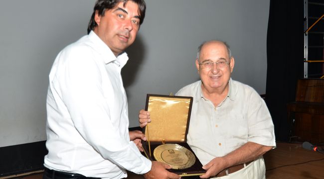 Foça Belediye Başkanı Gökhan Demirağ, Kemal Anadol’a teşekkür plaketi sundu.
