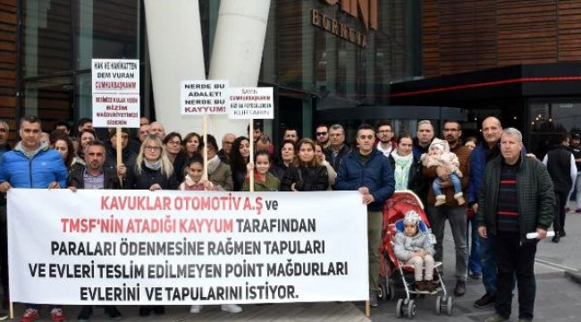 İZMİR'de Fethullahçı Terör Örgütü/Paralel Devlet Yapılanması'na yönelik soruşturma kapsamında tutuklanan işadamı Abdullah Kavuk'un sahibi olduğu şirket tarafından yapılan Point Bornova Projesi'nden daire alan ve halen evleri teslim edilmeyen hak sahipleri, mağduriyetlerinin giderilmesi için eylem yaptı.FETÖ davasından tutuklu bulunan Abdullah Kavuk'un başında bulunduğu şirketin yaptığı Point Bornova Projesi'nden daire alanlar, parasını ödediklerini söyledikleri evlerin kendilerine teslim edilmesini istedi. Projenin tamamlanan kısmı olan alışveriş merkezi bölümünde bir araya gelen ve kendilerini 'Kavuklar mağdurları' olarak adlandıran yaklaşık 100 kişi, FETÖ operasyonu kapsamında mal varlıklarına el konulduktan sonra kayyum atanan şirketin, projeyi tamamlaması için eylem yaptı. Yaklaşık 370 kişinin mağdur olduğunu belirten ve grup adına açıklama yapan Medat Şenay, şunları söyledi:
