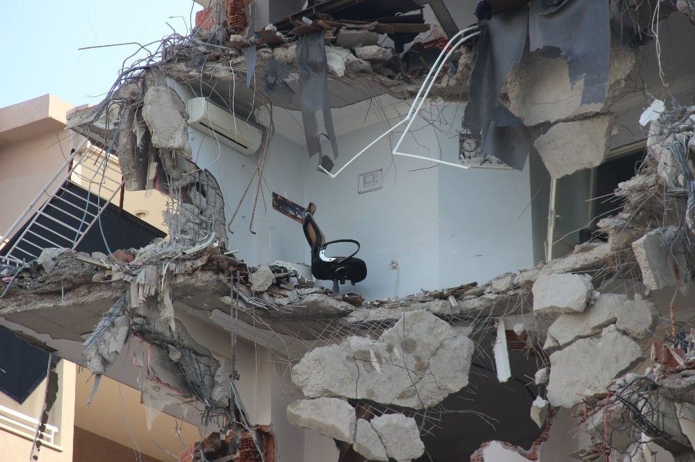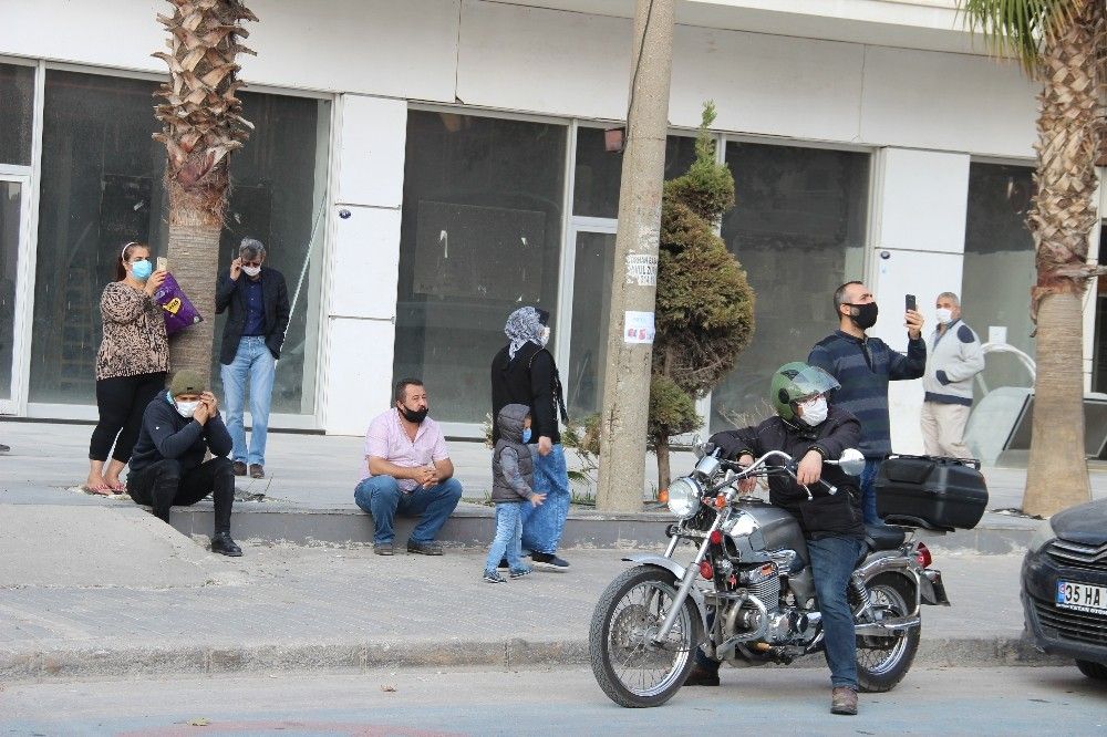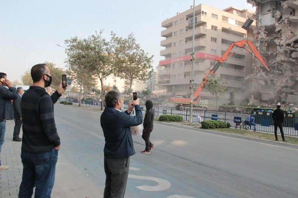 20 yıl önce almak için baktığım binalar şimdi hasarlı. Buradan ev almadım diye seviniyorum. Eğer alsaydım ben de mi bunları yaşayacaktım diye düşünüyorum. Evleri hasarlı olan insanlar için de üzülüyorum" diye konuştu. Yıkımı çekenler arasında Giresun'dan İzmir'e gelen gazetecilik bölümü öğrencileri de vardı.