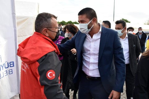 Depremin yaşandığı gün hızla Bayraklı’ya hareket eden ekipler, gece boyunca su, sıcak içecek servisi ve sandviç dağıtımı yaptı.