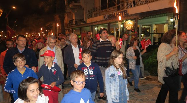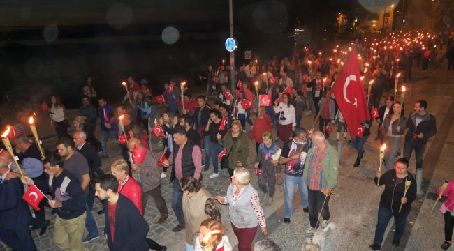Yanı sıra, Yeni Foça’da gerçekleşen Fener Alayı’na katılan vatandaşlar da, Cumhuriyet’e ve Ulu Önder Mustafa Kemal Atatürk’e olan saygı ve minnetlerini ifade etti.