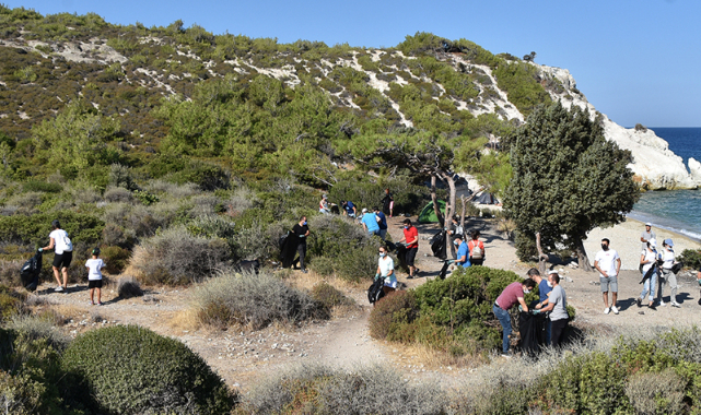 Sosyal sorumluluk projesi kapsamında Foça Belediyesi’nin desteği ile Kartdere mevkiinde yapılan çevre temizliğinde özellikle yangına sebebiyet verebilecek cam parçalarının yanında kağıt ve plastik atıklar toplandı.