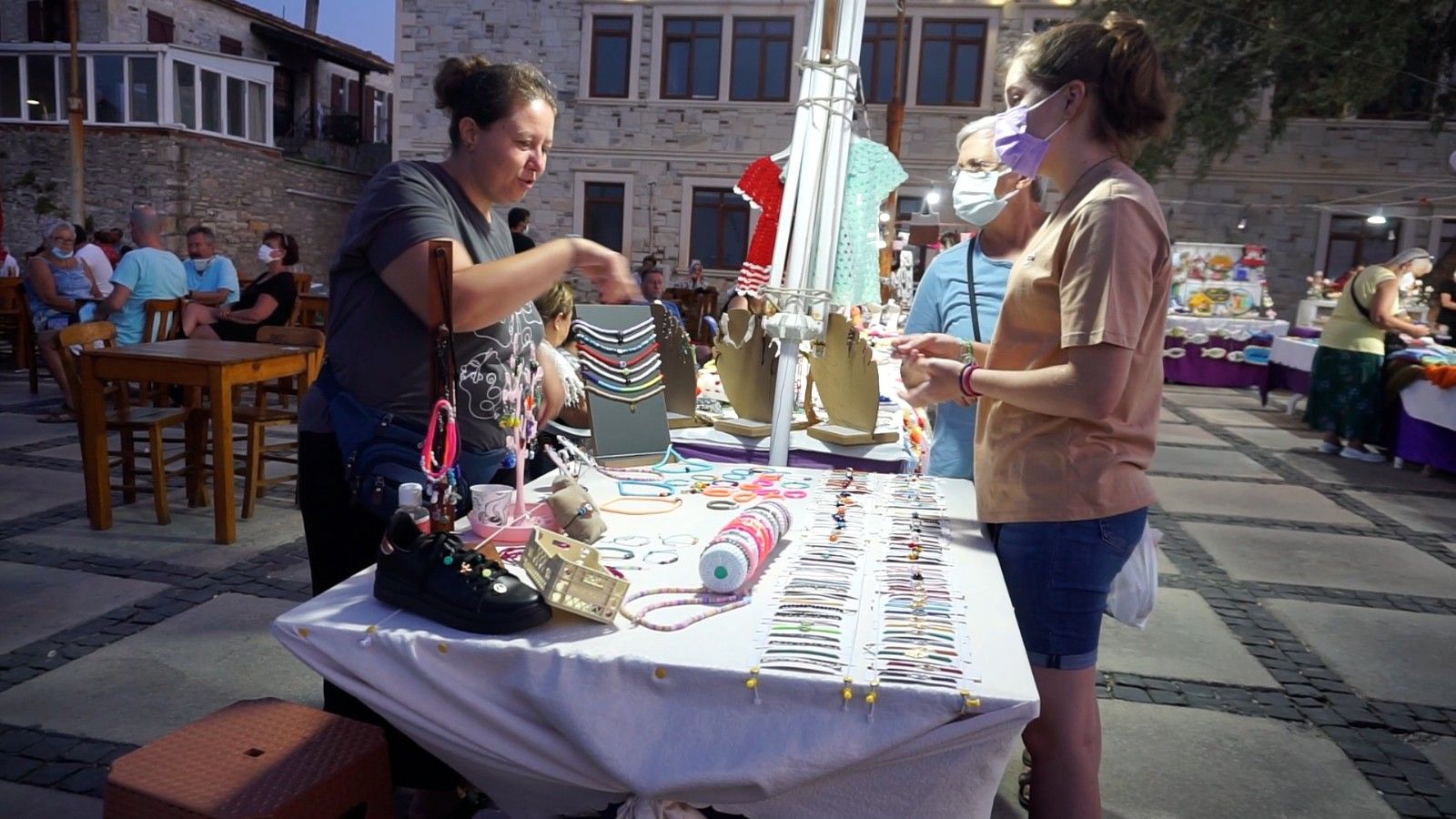 Foça ilçesinde kadınlar, kendi ürettikleri takı ve aksesuarları Yeni Foça'da vatandaşların beğenisine sundu. Kentte yaşayan kadınların hayata daha öz güvenli ve aktif bir şekilde katılımını desteklemek amacıyla düzenlenen bu etkinliğin, eylül ayı sonuna kadar devam edeceği belirtilirken, el emeği göz nuru ürünlerini satan kadınlar aile bütçesine katkı sağlıyor.