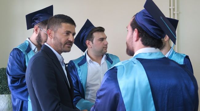 Foça Belediye Başkanı Fatih Gürbüz, tören öncesinde sohbet ettiği öğrencilere mesleki kariyerlerinde başarılar ve esenlikler diledi.
