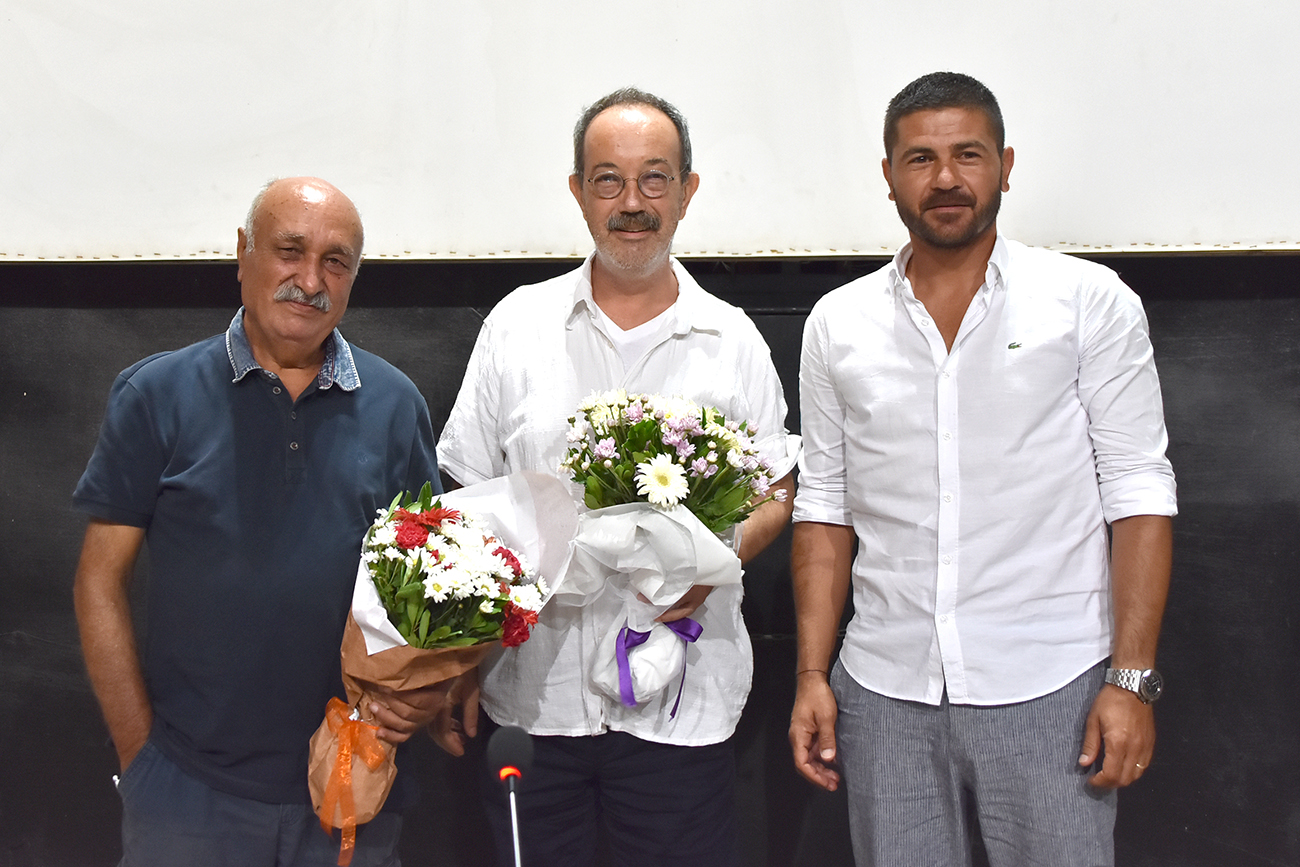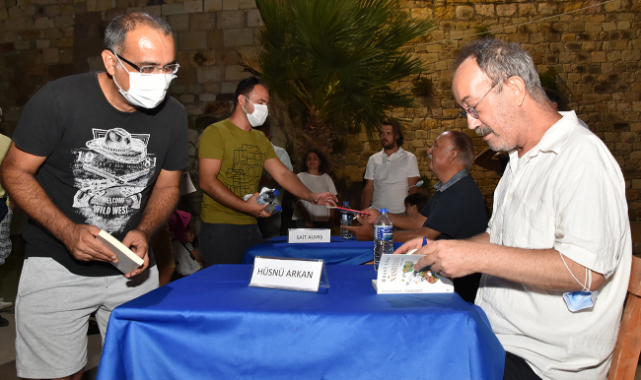 Söyleşinin sonunda Foça Belediye Başkanı Fatih Gürbüz, hüsnü arkan ve Sait Almış’a Foça Kitap Günlerine katkıları için teşekkür etti.