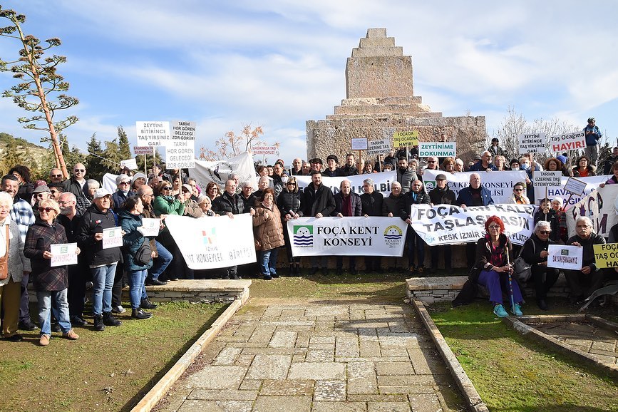 Foça’da kurulmak istenen Taş Ocağı projesinin iptali için 21 Ocak Cumartesi günü Pers Mezar Anıtı ve 2 Şubat Perşembe günü İzmir Valiliği Çevre, Şehircilik ve İklim Değişikliği İl Müdürlüğü binası önünde basın açıklamaları yapılmıştı. Foça’da Doğa ve Tarih Talanına Hayır Platformu öncülüğünde “Doğana, Tarihine, Zeytinine Sahip Çık” isimli imza kampanyasında toplanan 5 bin imza Çevre, Şehircilik ve İklim Değişikliği Bakanlığına iletilmişti.
